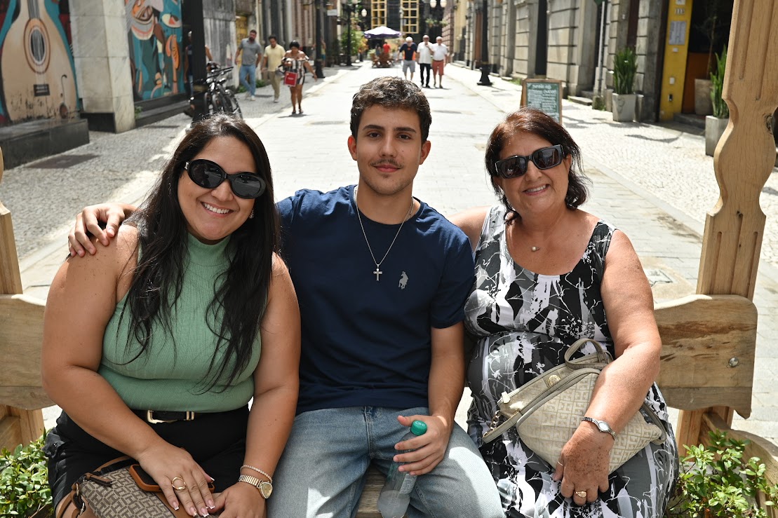 Aproveitando os registros das belezas históricas da região central, Tatiane Andrade, de 33 anos, assumiu a missão de guiar os amigos Rosimeire Martins, de 59, e o intercambista alemão Elijah Samuel, de 17. Moradora de São Vicente, a dentista contou que fez questão de incluir a Rua XV de Novembro e o Museu do Café no roteiro do passeio. “Eu trabalho em Santos e, apesar de amar pontos como o Novo Quebra-Mar, não tem como falar da Cidade sem mostrar o Centro”, destacou.