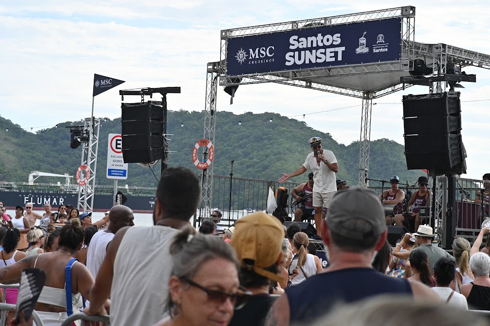 O fim de tarde neste sábado (17) foi de música, encontros e céu colorido na na Ponta da Praia, na orla de Santos. A terceira edição do Santos Sunset reuniu moradores e turistas na Praça Luiz La Scala, em um evento que combinou apresentações musicais ao vivo, feira de economia criativa, opções gastronômicas e o cenário tradicional do pôr do sol, com direito à passagem dos transatlânticos da MSC em escala no Porto de Santos.