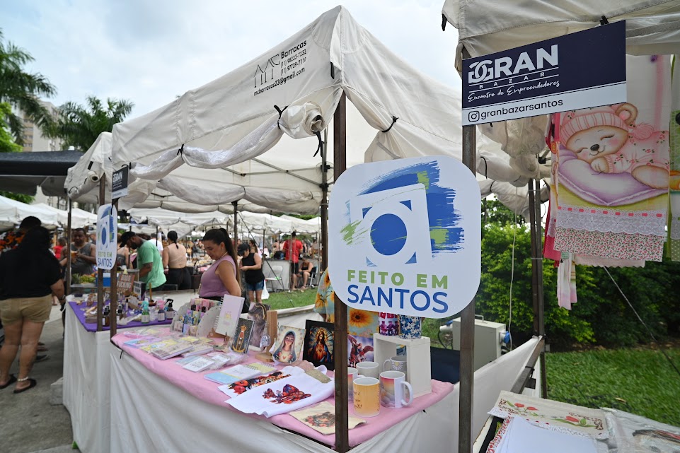 Uma das expositoras era a artesã Simone Neris, 46 anos, do Ateliê Laço de Papel, integrante do programa Feito em Santos, coordenado pela Secretaria de Comunicação e Economia Criativa (Secom) da Prefeitura de Santos. Ela comemorou o movimento constante do evento, que dá visibilidade para quem produz na Cidade. “Estar aqui à beira-mar com todas essas pessoas circulando é muito bom. Esses espaços valorizam e fortalecem o nosso trabalho”.