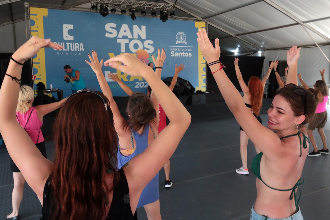 Lançamento do Carnacentro, aulas de dança e muita música embalam as tendas do Santos Verão 2026